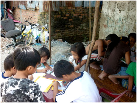 Trong khi nhiều bạn bè khác đi làm gia sư tại nhà cho những gia đình khá giả trong khu vực Thành phố Hồ Chí Minh, thì những bạn trẻ này lại là những “ gia sư tại nhà miễn phí” cho những em nhỏ của hơn 60 hộ dân ở xóm nghèo này, cùng các em nuôi giấc mơ trong gian khó.
